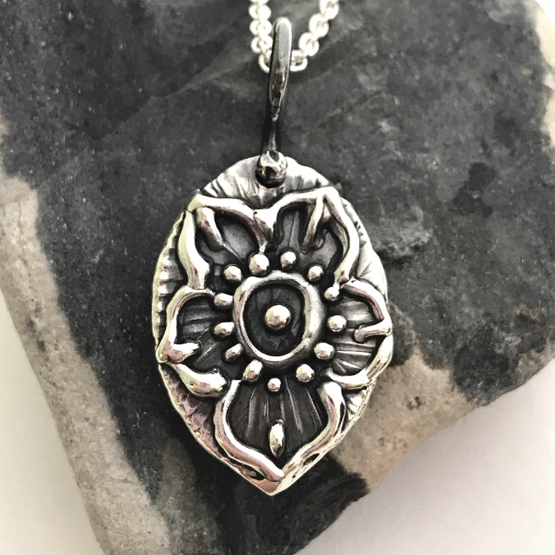 Almond shaped Mehndi Flower Pendant