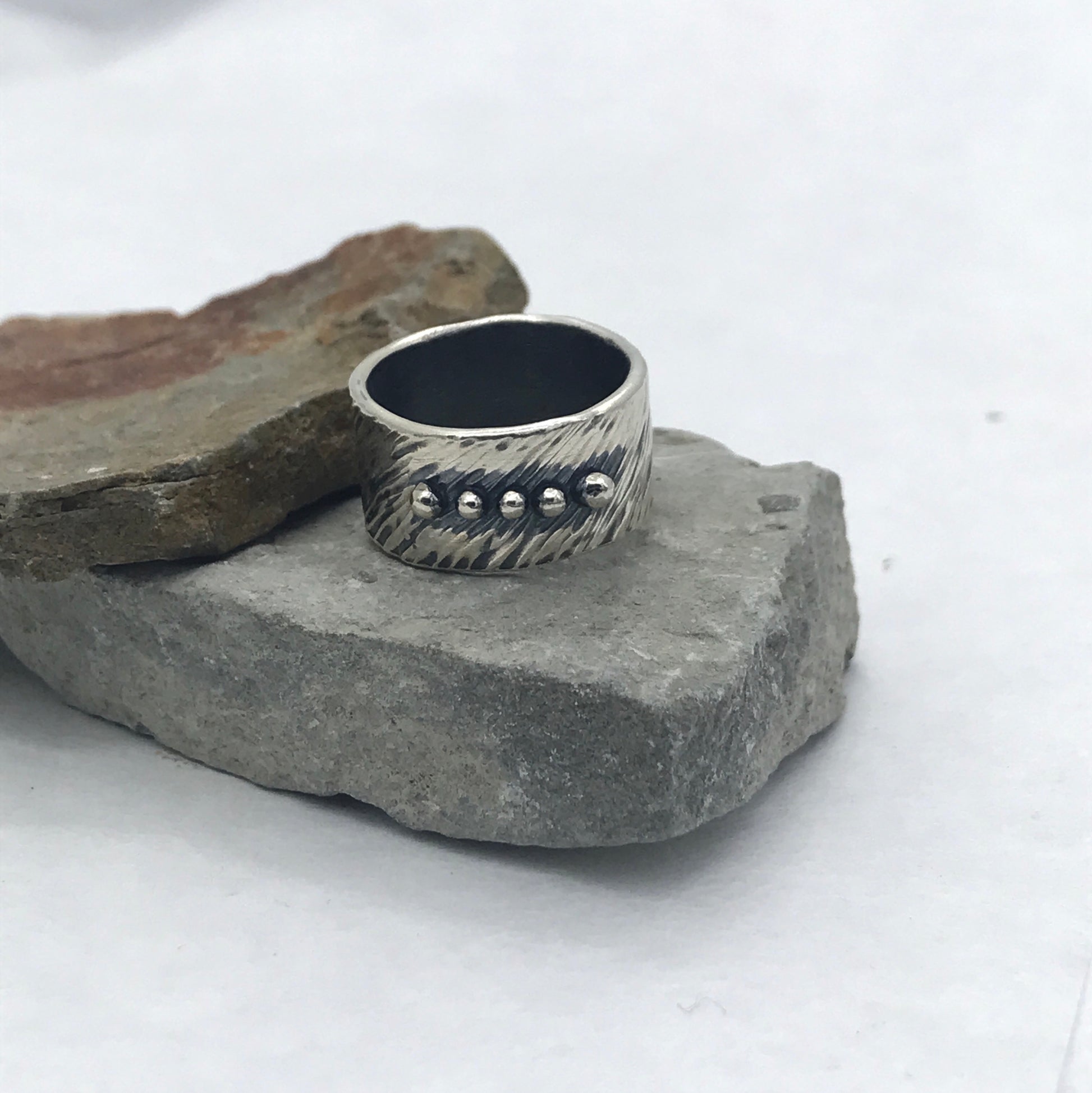 Slanted Brushstrokes Ring with Horizontal dots- Sterling silver